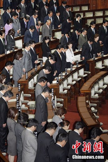 3月18日下午,日本民众为一周前大地震中6000多名遇难者举行默哀仪式,所有避难所和救援人员都停止作业,为死难者哀悼。