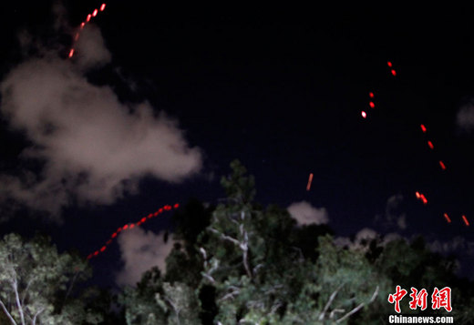 3月21日,利比亚首都的黎波里防空炮火向空中射击。利比亚首都的黎波里多处地点21日夜间遭轰炸,这是西方国家连续第三天晚上对利比亚采取军事行动。