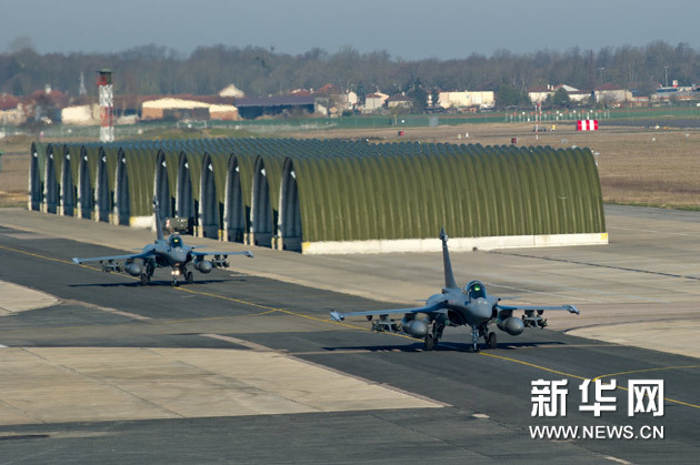 3月21日,法国“阵风”战机准备参加代号“哈马丹”的对利比亚的军事行动。法国总参谋部21日说,法国3天以来在利比亚军事行动中共出动军用飞机55架次,飞行时间总计约400小时。新华社发(法国国防部供稿)