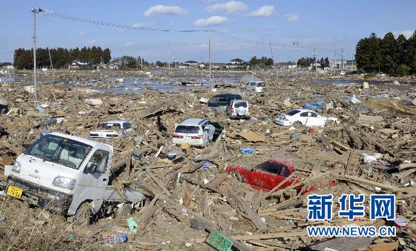 3月19日拍摄的照片显示,遭受地震和海啸袭击的日本北部宫城县仙台郊区的景象。新华社/路透