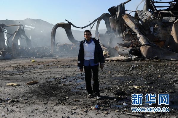 3月22日,在利比亚首都的黎波里,一名工作人员站在轰炸后的海军厂房废墟外。当天下午,利比亚官方首次组织外国记者到一处被联军摧毁的海军设施参观。遭轰炸的设施是位于的黎波里北部的海军军港内的一个维修和培训厂房,与对面的居民密集区仅一街之隔。据守卫这里的士兵介绍,当地时间21日晚9时30分,该厂房总共遭到来自地中海上美国军舰发射的7枚导弹袭击,整个厂房被完全摧毁,所幸未造成人员伤亡。新华社记者杨光摄