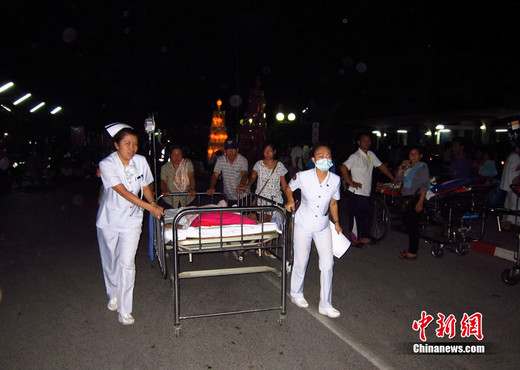 根据美国地质勘探局地震信息网发布的消息,缅甸东北部地区当地时间3月24日晚,在相距不到一分钟时间内连续发生两次7级强震。泰国、越南、我国云南和广西等有震感。图为泰国清莱震感明显,医院病人被疏散至室外。