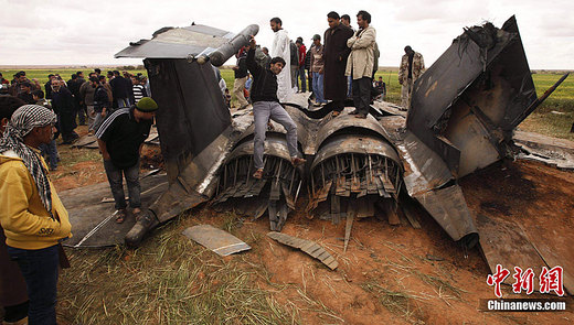 3月22日,美国军方一名发言人称,美军一架F-15E“鹰”式战机因机械故障在利比亚坠毁,已找回1名生还飞行员,该架战机上另1名飞行员的搜寻工作也正在进行当中。该发言人说,目前尚无证据证明这架战机是遭到火力攻击后坠毁的。图为坠毁美军F-15E战斗机残骸。