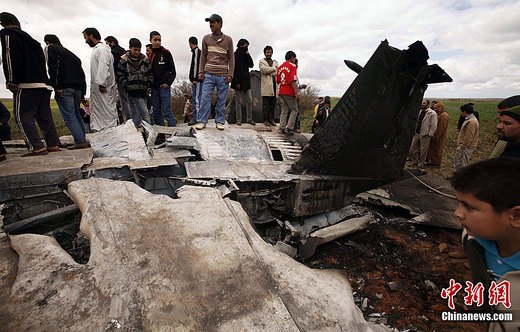 3月22日,美国军方一名发言人称,美军一架F-15E“鹰”式战机因机械故障在利比亚坠毁,已找回1名生还飞行员,该架战机上另1名飞行员的搜寻工作也正在进行当中。该发言人说,目前尚无证据证明这架战机是遭到火力攻击后坠毁的。图为坠毁美军F-15E战斗机残骸。