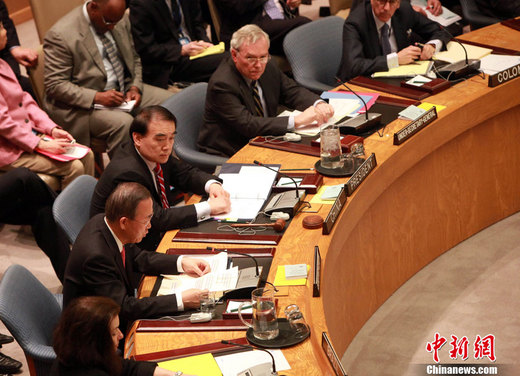 当地时间3月24日,联合国安理会就利比亚问题举行公开会议,听取了联合国秘书长潘基文通报关于利比亚局势的第1973号决议执行情况。安理会随后转入闭门磋商,各方就利比亚问题阐述了看法。安理会本月轮值主席、中国常驻联合国代表李保东主持会议。中新社发 孙宇挺 摄