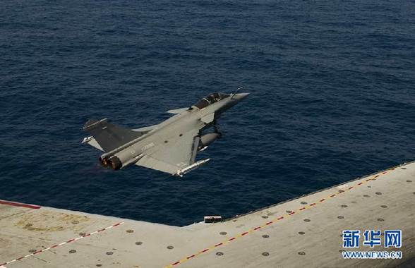这张法国国防部3月24日提供的照片显示,“戴高乐”号航母上的“阵风”战机准备执行对利比亚的军事任务(3月23日摄)。法国国防部长热拉尔·隆盖23日在接受法国媒体采访时说,法国在利比亚实施军事行动头三天共炸毁利比亚军方装甲车十余辆。 新华社发