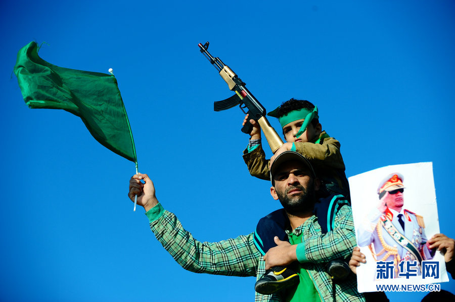3月24日,在利比亚首都的黎波里的一座公墓,一名市民举着利比亚国旗参加葬礼。 利比亚官方当日宣布,近100名平民在西方联军空袭中丧生。新华社记者杨光摄