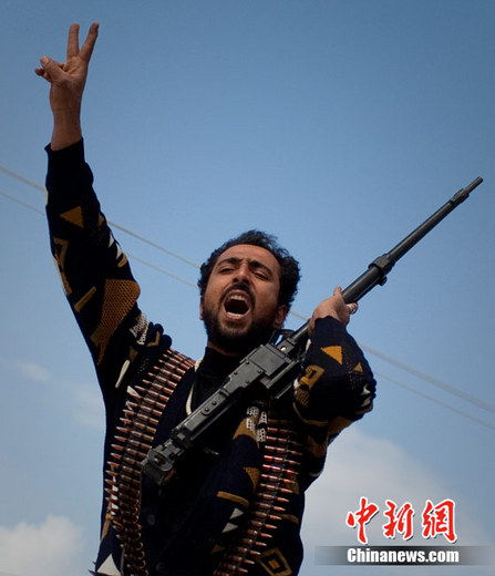 2011年3月21日,班加西市郊,反政府武装士兵庆祝胜利。