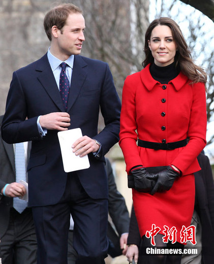 资料图:2月25日,英国威廉王子和未婚妻凯特·米德尔顿访问苏格兰圣安德鲁斯大学。
