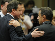 卡梅伦和萨科奇(右)呼吁卡扎菲支持者弃暗投明