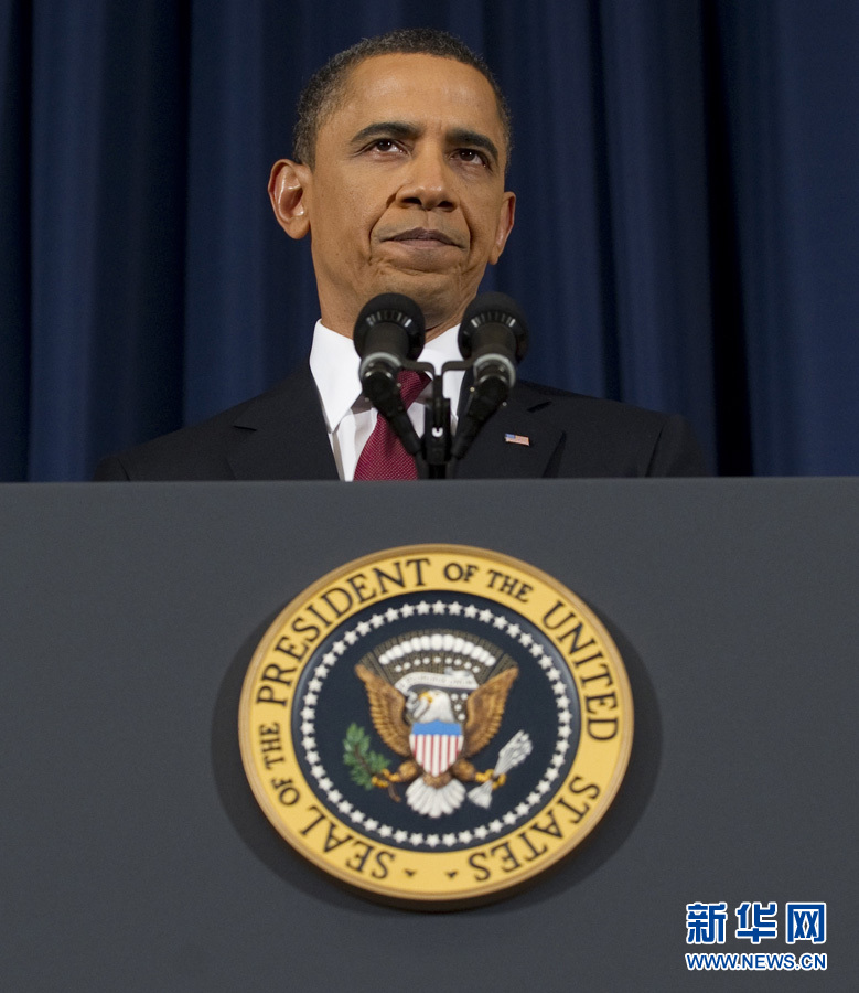 3月28日,美国总统奥巴马在华盛顿发表演说,为利比亚军事行动辩解。 新华社/法新