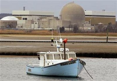 停泊在西布鲁克核电站前面水面上的一艘船。