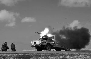 3月31日,利比亚反政府武装用架在卡车上的火箭发射器进攻政府军。由于缺乏训练和重武器,也没有统一指挥,利比亚反政府武装在政府军的猛烈攻势下节节败退。