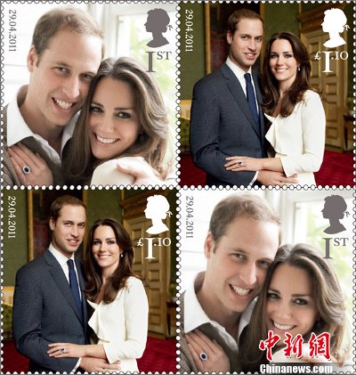 图为为庆祝威廉王子婚礼而发行的一套纪念邮票。