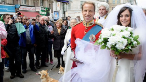 愚人节伦敦上演“皇室婚礼”,假威廉、凯特引围观