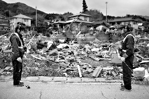 4月4日,日本岩手县大船渡,供水系统调查员正在探测地下水泄漏情况。