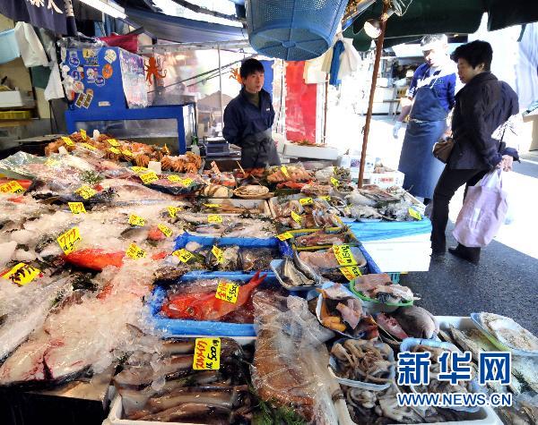 4月5日,卖家在日本首都东京一家海鲜摊上招揽顾客。日本茨城县渔业协会5日宣布,从4日在北茨城市附近海域捕捞的玉筋鱼幼鱼体内检测出放射性铯达到每千克526贝克勒尔,超过食品卫生法放射物暂定标准值设定的每千克500贝克勒尔。这是首次从鱼类体内检测出放射性物质超标。新华社/法新