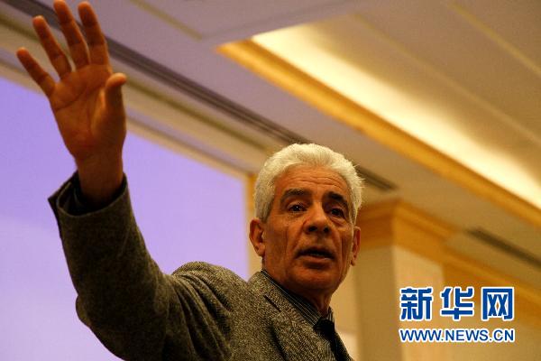 资料照片:2011年3月7日,利比亚外长穆萨·库萨出席在首都的黎波里召开的新闻发布会。 新华社记者 张锰 摄