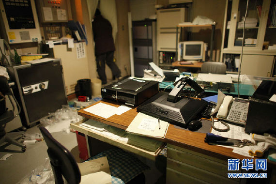 4月8日,一名工作人员从位于岩手县的一家旅馆工作间走出。当地时间4月7日晚23时32分,日本东北部海域发生里氏7.4级地震。新华社/路透