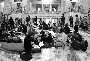 4月7日,不少人彻夜待在美国国会山,抗议2011财年预算案削减教育和其他公共领域的预算。
