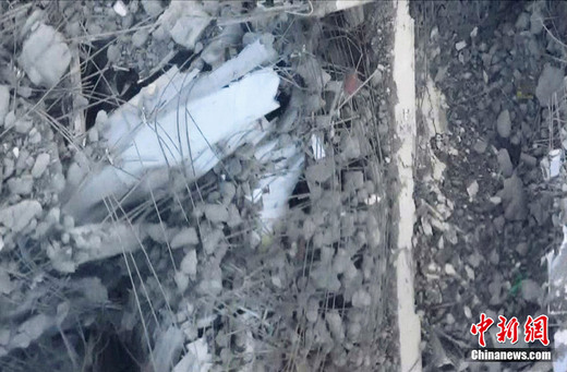 3月16日,由日本自卫队员在直升机上拍摄的照片显示福岛第一核电站反应堆外墙已成碎片。