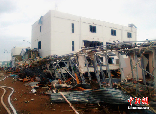 日本原子能安全保安院2011年3月23日发布的照片显示了福岛第一核电站内部建筑物受损情况。