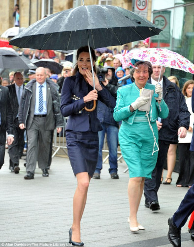 据了解,这是凯特在与威廉的婚礼前最后一次以未婚妻的官方身份出现在公众面前。只可惜天公不作美,从上午11时就开始下小雨,随后转为瓢泼大雨。在场等候的民众与100多媒体记者一起纷纷撑起雨伞,穿上雨衣,但热情依旧。