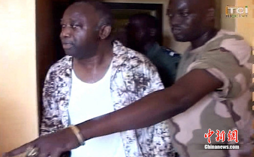 当地时间2011年4月11日晚些时候,科特迪瓦经济首都阿比让,科特迪瓦前总统巴博及其夫人11日在阿比让被支持前总理瓦塔拉的士兵逮捕。