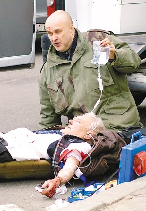 救援人员医治伤者。