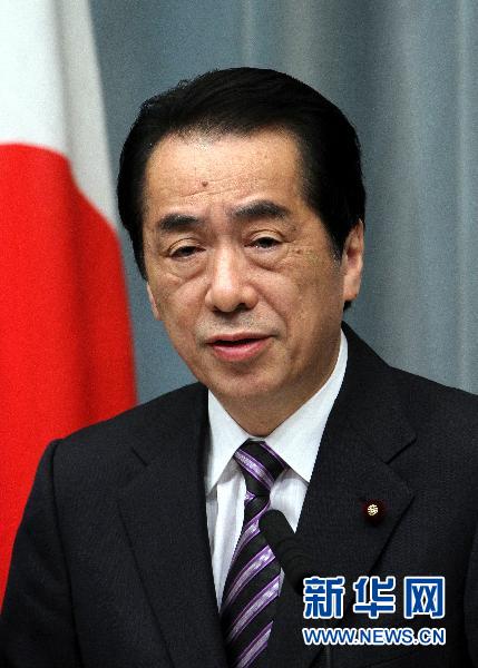 4月12日,在日本首都东京首相官邸,日本首相菅直人在记者会上发言。 新华社发