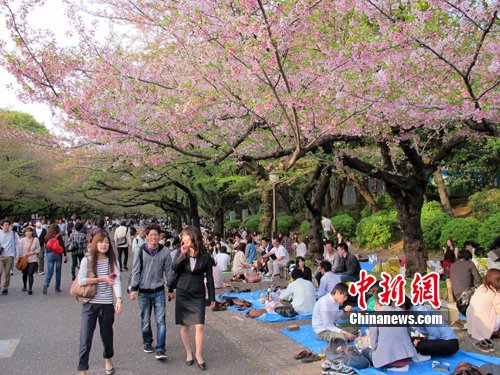 但是,地震已经无法阻挡明媚春光对人们的“诱惑”。在东京赏樱胜地上野公园,成群结队、呼朋唤友的日本人重新聚集到樱花树下把酒言欢。最美瞬间的“樱花七日”已近尾声,淡粉色的花瓣和往年一样,随风舞在游人的头顶。从上野动物园走出的孩子们,兴高采烈地抱着熊猫玩偶,唱RAP的街头艺人也依旧投入忘我地吟诵着自己对未来的企盼。游人只有在不经意间瞥到“支援东北”的标语时才感受到了这里与往昔的些微不同。