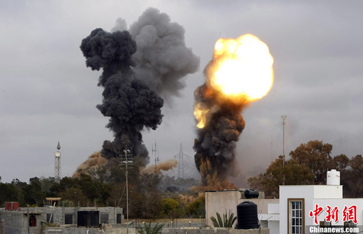 3月29日,利比亚首都的黎波里,利比亚领导人卡扎菲住所附近发生多起爆炸。