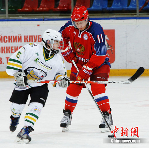 普京说:“我本来觉得这项运动不适合我,可现在我非常喜欢冰上曲棍球,它活力十足——当然也很费体力,而且比起足球运动它不容易使人受伤。”