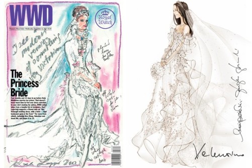 多位著名设计师为英国准王妃凯特提供婚纱草图