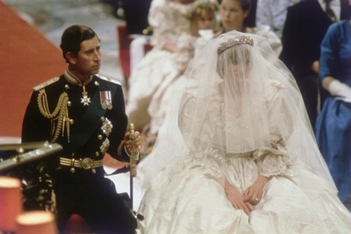 当年威廉的生母戴安娜王妃身穿华美婚纱,与查尔斯王储步入婚姻殿堂