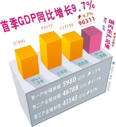 图表:中国2011年首季GDP同比增长9.7% 新华社发