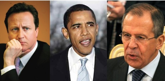 对利比亚态度:(从左至右)英国:加大制裁,美国:出动轰炸机,俄罗斯:警告严重后果