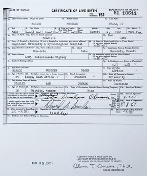 白宫公布奥巴马出生证明,证实奥巴马出生在美国夏威夷