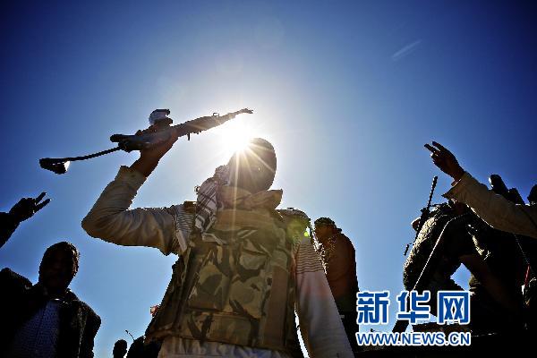 4月10日,在利比亚艾季达比耶,反政府军士兵庆祝艾季达比耶防守成功。当日,利比亚反政府军与政府军在艾季达比耶发生激战,双方互相发射火箭弹等,反政府军有3辆载有火箭弹的卡车被击中,造成约10人死亡。新华社记者才扬摄