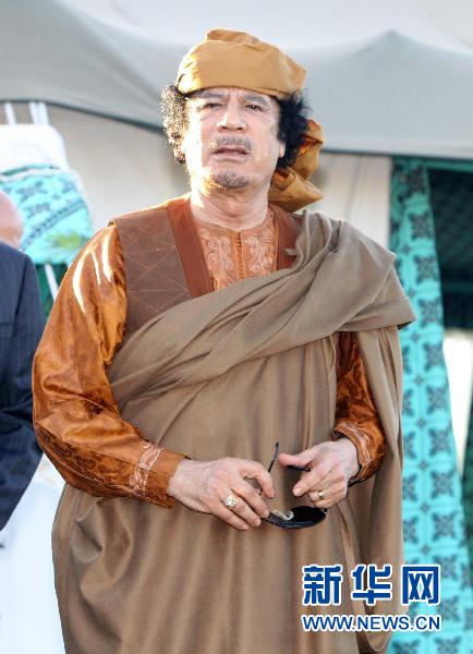 4月10日,在利比亚首都的黎波里,利比亚领导人卡扎菲会见非洲联盟(非盟)关于利比亚问题的专门委员会成员。新华社发