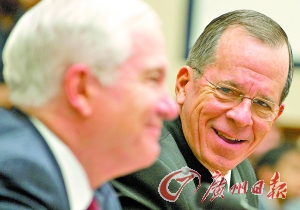 资料图片:罗伯特-盖茨和迈克-马伦(右)向国会众议院军事委员会和参议院军事委员会作汇报。