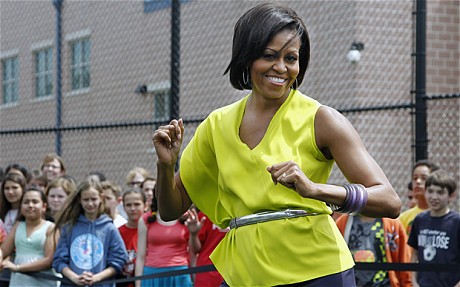 据外媒报道,米歇尔·奥巴马5月2日在华盛顿一个中学宣传关于控制少儿肥胖的活动时,和着歌手碧昂斯的歌曲在学生面前秀了段舞蹈。