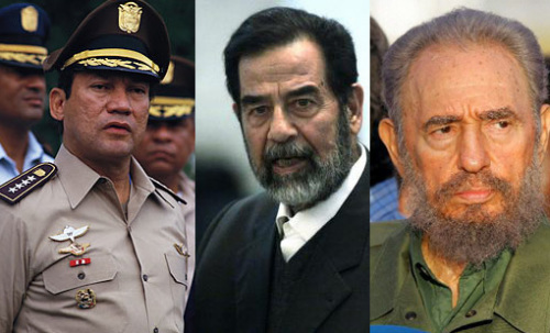 巴拿马前政府首脑曼努埃尔?诺列加(左)、伊拉克前领导人萨达姆?侯赛因(中)、古巴前总统菲德尔·卡斯特罗(右)