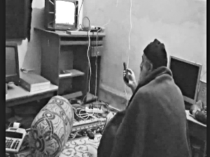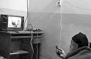 美国情报部门公布的录像显示,拉丹正在一个简陋的屋子里看电视。