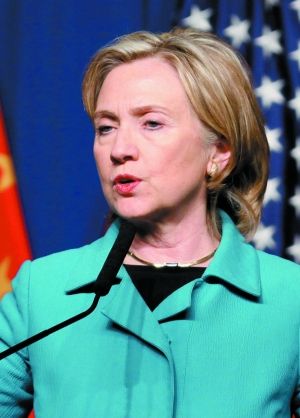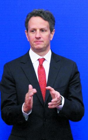 美国总统奥巴马特别代表国务卿希拉里·克林顿(右二)和财政部长蒂莫西·盖特纳(右一)