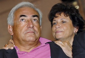 资料图:国际货币基金组织(IMF)总裁斯特劳斯—卡恩(左)与妻子
