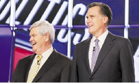 金里奇(左)和罗姆尼 新华社资料照片