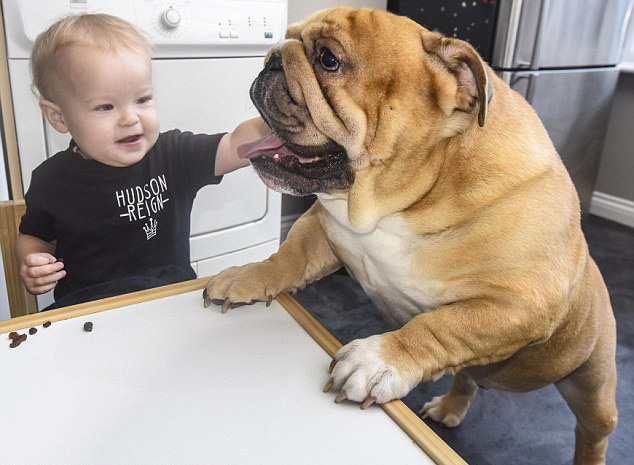 狗向来是人类的好朋友,尤其是孩子们的好玩伴。据英国《每日邮报》2月14日报道,英国男童鲍勃(Bob)从出生起便和斗牛犬戴夫(Dave)每天吃、睡、玩都在一起,成为了形影不离的好朋友。