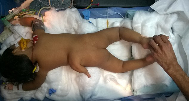 据英国《每日邮报》2月16日报道,印度一名女婴出生时后背居然长出了一条“腿”,吓坏了父母。不过,经过手术,这条多余的肢干已被成功切除。