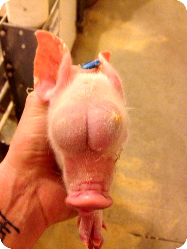 从视频中可以看到,这只猪看上去仍然活着,呼吸平稳,但人们还是为它执行了安乐死,来终结它未来可能遭受的苦难。尽管这只畸形猪已经死去,但它的出现仍在网上引起了轩然大波。一名网友将这只畸形猪的照片放到了网上,并写道,“我不确定它是公是母,但我知道它还活着,但它或许已经脑死亡了。